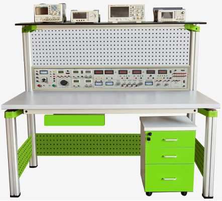 本實驗臺主要由實驗主機箱、儀器架、電源控制箱、獨立實驗電路模塊、實驗桌(含磁吸式實驗基座)、儲存柜、學(xué)生凳等組成。
