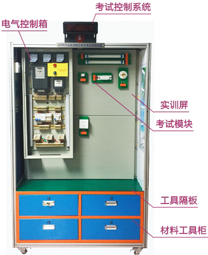 低壓電工照明實(shí)操考核柜-是適合企業(yè)電工(初級(jí))技能培訓(xùn)教學(xué),電工考核柜采用了照明電路,也是電工技術(shù)等級(jí)標(biāo)準(zhǔn)和電工操作證所規(guī)定的考核鑒定內(nèi)容,電工考核柜為了培養(yǎng)學(xué)員在實(shí)踐中的基本技能和接線技巧,讓學(xué)員很快掌握實(shí)際操作技能知識(shí)與實(shí)踐接線技巧。