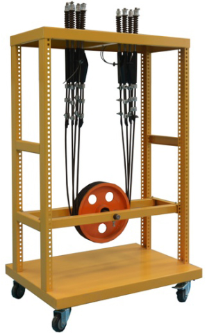 整個(gè)裝置由移動(dòng)框架、曳引繩、繩頭棒、返繩輪等部件組成。移動(dòng)框架設(shè)計(jì)更具操作性,使學(xué)生直觀地認(rèn)識(shí)曳引繩、繩頭棒等零部件及繩頭的制作。