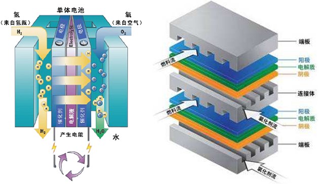 燃料電池運(yùn)行過(guò)程中,只排除水和熱量,不會(huì)產(chǎn)生任何有害物質(zhì)及噪音;