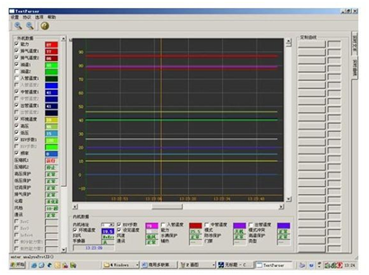 6)、多達(dá)8路設(shè)備運(yùn)行監(jiān)控:在線監(jiān)控機(jī)組的壓縮機(jī)、膨脹閥、各點(diǎn)溫度、保護(hù)動(dòng)作電路等運(yùn)行狀態(tài)。