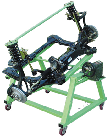 1、采用全新大眾捷達前橋總成(附件齊全,易于拆裝),并裝在專用翻轉(zhuǎn)架上。