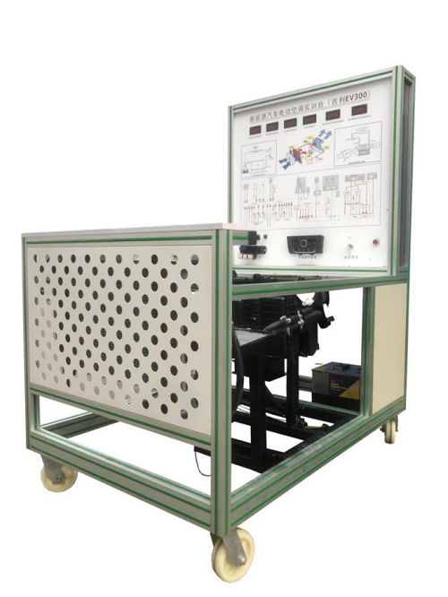 點火開關、電動汽車空調(diào)壓縮機、膨脹閥總成、干燥器總成、鼓風機總成、冷凝器、冷卻電子風扇、電動空調(diào)壓縮機控制器總成、空調(diào)蒸發(fā)箱總成、充電器與充電接口、充電插線、DC-DC轉(zhuǎn)換器、鋰電池組、空調(diào)操作面板、高低壓空調(diào)壓力表、采暖模塊總成、電源總開關、急停開關、直流接觸器、輔助蓄電池(12V45AH)、一體化全鋁合金型材搭建的移動臺架(1500×1000×1700mm ,帶自鎖腳輪裝置,帶安裝檢測端子的原理面板948×898mm)、故障模擬與排除裝置、設備操作說明書