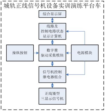 城軌正線信號機設備實訓演練平臺由信號組合柜、信號繼電器、三顯示矮型信號機、信號變壓器、燈絲繼電器、XB箱、信號機及控制電路狀態(tài)顯示計算機、顯示屏、電源模塊、數(shù)字量驅(qū)動采集模塊、斷路器、練功平臺車等設備組成,設備外觀結(jié)構(gòu)如下圖所示。