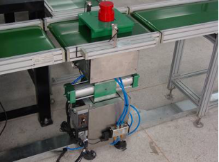 本輸送系統(tǒng)由皮帶輸送機(jī)和轉(zhuǎn)角輸送機(jī)組成O型輸送系統(tǒng),框架采用鋁合金框架,其結(jié)構(gòu)簡(jiǎn)單、重量輕,安裝、使用、維護(hù)方便。每條皮帶運(yùn)輸機(jī)由鋁合金支架、皮帶、輥筒、電機(jī)與減速器組成,并且輸送機(jī)上裝有位置傳感器。轉(zhuǎn)角輸送部分由直流電機(jī)+減速器驅(qū)動(dòng),所有輸送機(jī)速度可調(diào),系統(tǒng)中要有一條變頻調(diào)速輸送線。