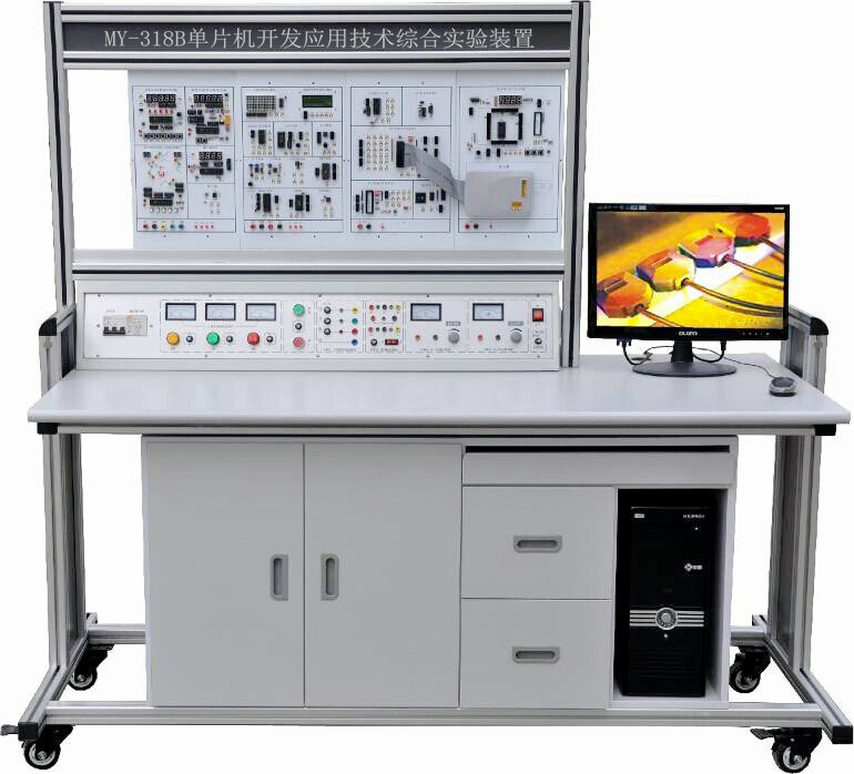 單片機(jī)開發(fā)應(yīng)用技術(shù)綜合實(shí)驗(yàn)裝置-由控制屏、實(shí)驗(yàn)掛箱、實(shí)驗(yàn)桌組成,通過本實(shí)驗(yàn)臺(tái)可完成單片機(jī)的接口擴(kuò)展、數(shù)據(jù)采集、數(shù)據(jù)顯示、鍵盤控制、定時(shí)器、打印機(jī)接口等實(shí)驗(yàn),配備有仿真器。設(shè)有電流型漏電保護(hù)器,控制屏若有漏電現(xiàn)象,漏電流超過一定值,即切斷電源,對(duì)人身安全起到一定的保護(hù)。裝置采用組件式結(jié)構(gòu),更換實(shí)驗(yàn)?zāi)K便捷。如需擴(kuò)展功能或開發(fā)新實(shí)驗(yàn),只需添加實(shí)驗(yàn)?zāi)K掛箱即可,永不淘汰。