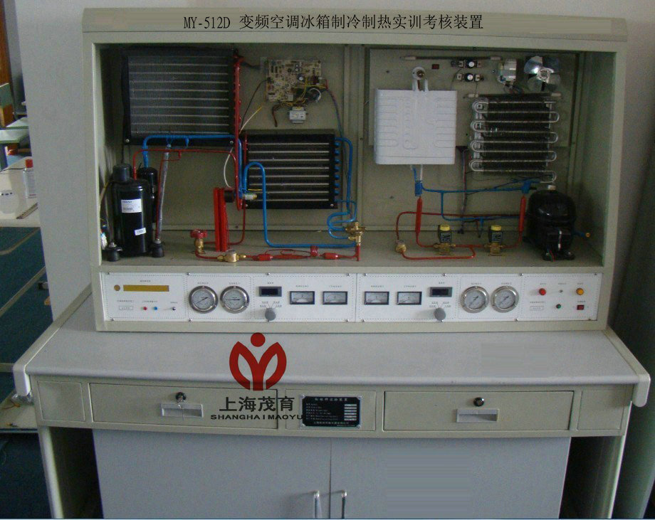MY-512D 變頻空調(diào)冰箱制冷制熱實訓考核裝置也適合技工學校,職業(yè)培訓學校,職教中心、制冷類專業(yè)《制冷設(shè)備維修工(初、中、高級)》、 《家用制冷設(shè)備原理與維修》、 《制冷空調(diào)裝置操作安裝與維修》、 《小型制冷與空調(diào)裝置》等課程。