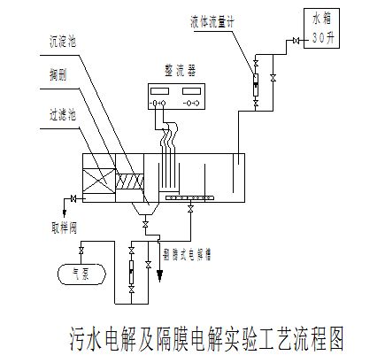 d)  將配好的原水倒入到高位水箱,將流量計(jì)控制旋鈕調(diào)到最大,直到污水注滿電解槽后停止加入。