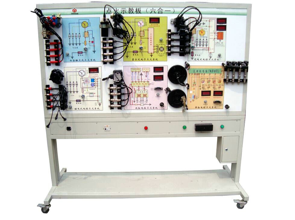 發(fā)動機點火示教板選用汽車六種點火系統(tǒng)實物,展示汽車點火系統(tǒng)的結(jié)構(gòu)與原理;面板上繪有六種完整的點火系統(tǒng)的電路圖,設(shè)置有檢測端子,可通過儀器儀表檢測各種信號參數(shù)如電壓、電阻、頻率等。本示教板功能齊全、操作方便、安全可靠。
