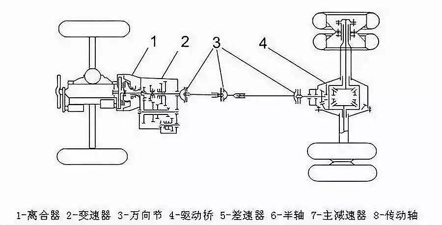 傳動系一般由離合器、變速器、萬向傳動裝置、主減速器、差速器和半軸等組成。汽車發(fā)動機(jī)所發(fā)出的動力靠傳動系傳遞到驅(qū)動車輪。傳動系具有減速、變速、倒車、中斷動力、輪間差速和軸間差速等功能,與發(fā)動機(jī)配合工作,能保證汽車在各種工況條件下的正常行駛,并具有良好的動力性和經(jīng)濟(jì)性。