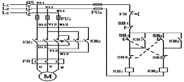 要改變電動(dòng)機(jī)的轉(zhuǎn)向時(shí),無須先按下停止按鈕,可直接按下反轉(zhuǎn)按鈕,使電動(dòng)機(jī)反轉(zhuǎn)。
