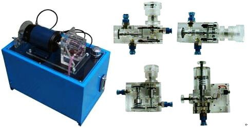 為了盡快的適應(yīng)各個(gè)領(lǐng)域的發(fā)展,培養(yǎng)出大力的掌握液壓傳動(dòng)基礎(chǔ)知識(shí)和實(shí)際操作技能的技術(shù)工人、技術(shù)員、工程師、輸送到社會(huì)主義建設(shè)的各條戰(zhàn)線。我公司根據(jù)《液壓傳動(dòng)》、《液壓原理》、《機(jī)械基礎(chǔ)》、等教材內(nèi)容要求和國(guó)內(nèi)液壓元件特點(diǎn),參考國(guó)外先進(jìn)技術(shù),經(jīng)過(guò)多年的努力探索,采用高精密度加工工藝,克服了透明有機(jī)塑料具有熱塑性,容易變形,機(jī)械強(qiáng)度差,而液壓元件表面光潔度,結(jié)構(gòu)精度要求高的一系列實(shí)際困難,最終研制成功透明液壓傳動(dòng)演示系統(tǒng)。
