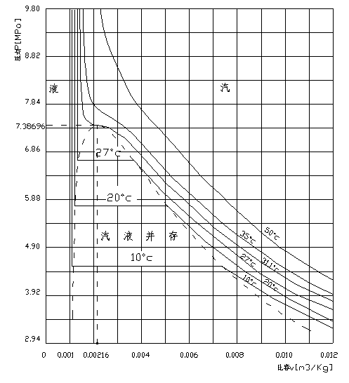 臨界比容Vc[m3/Kg]                    表2