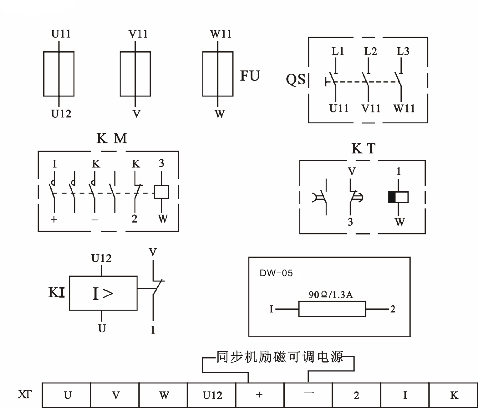布置與接線可參考圖2,圖中KI也可裝在其它板上,接線端子板的“十、一”兩個端子應(yīng)接掛板下的同步機(jī)勵磁可調(diào)電源的“十、一”端子。操作者參考圖2(b)可畫出實(shí)際接線圖。安裝與接線后應(yīng)符合第二章2-1的要求。