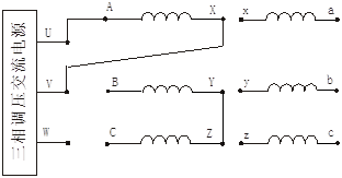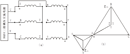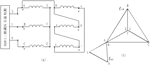 3) 用電壓表測出電壓UBY、UCZ、UBC,若UBC=│UBY-UCZ│,則首末端標(biāo)記正確;若UBC=│UBY+UCZ│,則標(biāo)記不對。須將B、C兩相任一相繞組的首末端標(biāo)記對調(diào)。