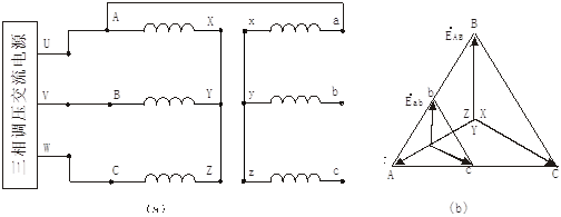 (α)接線圖             (b)電勢相量圖