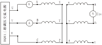 按圖3-15接線。將交流電源電壓調(diào)至零位置。接通電源,逐漸增加外施電壓,直至I2K≈I2N為止,測取變壓器副方電流I2K和原方電流IA、IB、IC將數(shù)據(jù)記錄于表3-17中。