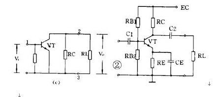 見圖 1 ( c )。電路的特點是電壓放大倍數(shù)從十幾到一百多,輸出電壓的相位和輸入電壓是相反的,性能不夠穩(wěn)定,可用于一般場合。