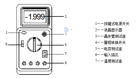 DT890A型萬用表面板示意圖如圖1-2所示。