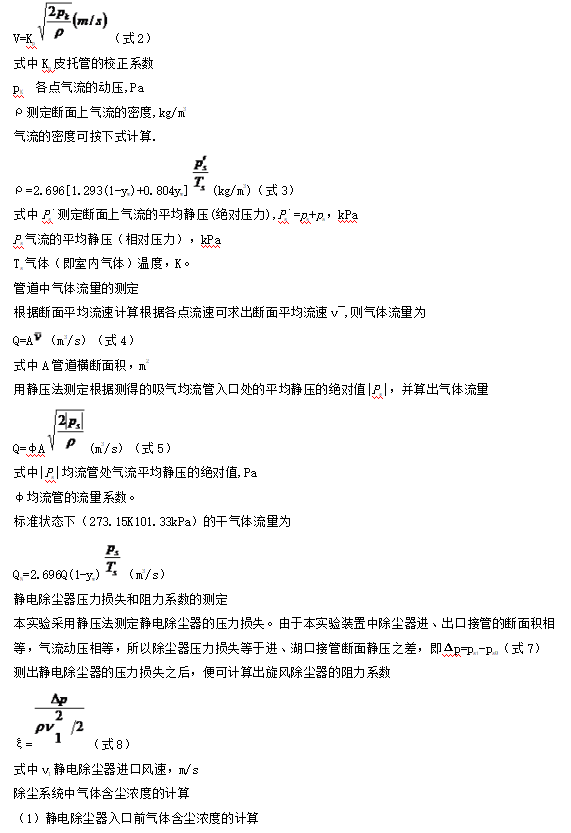 板式靜電除塵器的壓力損失和阻力系數(shù)的測定