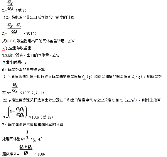 計算靜電除塵器的處理氣體量和漏風率,并將測定及計算結(jié)果記入表1