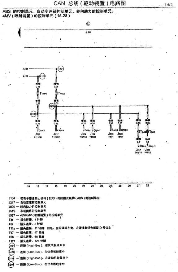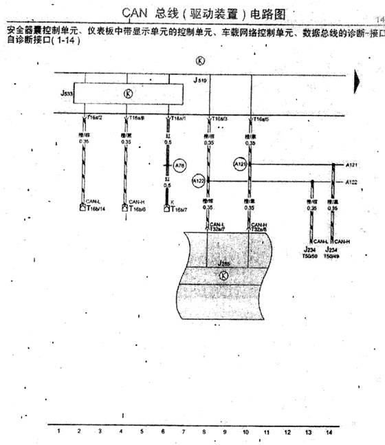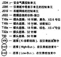 2)自診斷:檢測(cè)可以使用V•A•G1551、V•A•G1552或VAS5051,地址碼為44。