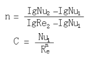 實(shí)驗(yàn)研究表明,流體橫向單管表面時(shí),一般可將上式整理成下列具體的指數(shù)形式: