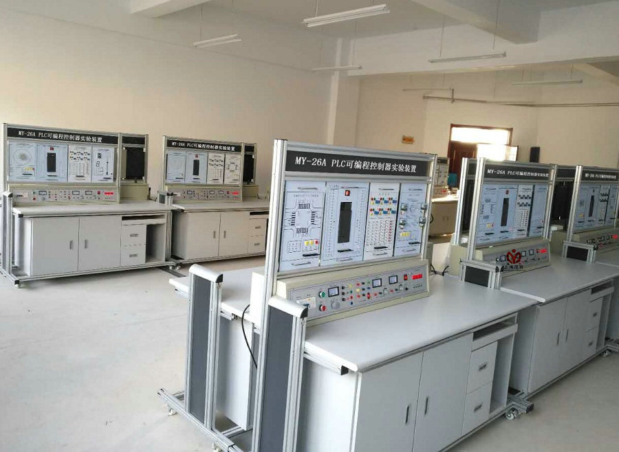 PLC可編程實(shí)訓(xùn)室,PLC實(shí)驗(yàn)室主要承擔(dān)《PLC與控制技術(shù)》《機(jī)電控制與PLC》《變頻技術(shù)》《計(jì)算機(jī)控制技術(shù)》等課程的基礎(chǔ)性實(shí)驗(yàn)、開(kāi)放性實(shí)驗(yàn)、課程設(shè)計(jì)及畢業(yè)設(shè)計(jì)等任務(wù)。本室旨在幫助學(xué)生加深鞏固對(duì)所學(xué)PLC、電機(jī)、變頻器等課程理論知識(shí)的理解,提高實(shí)際動(dòng)手和設(shè)計(jì)能力。